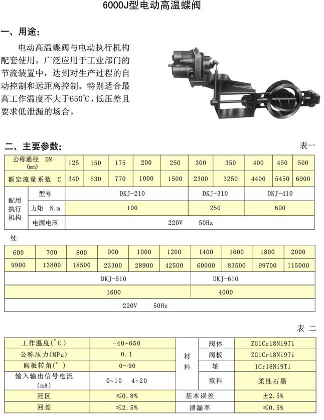 6000J型电动高温蝶阀